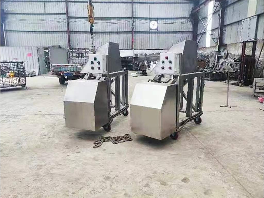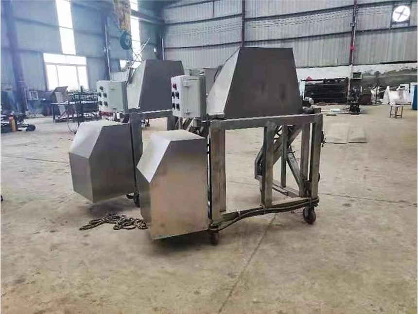 我厂生产的提升机分为移动式提升机和固定式提升机两种机型,T200型提升机是专为200L标准肉车配套的提升设备,其功能是将物料提升到一定高度后,倾倒至设备的料斗中,以完成加料工作。该机采用