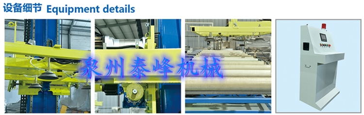 寸可自动计数堆垛不同长度规格的板材;机器输送长度8米,可直接与夹芯板主机连接,实现