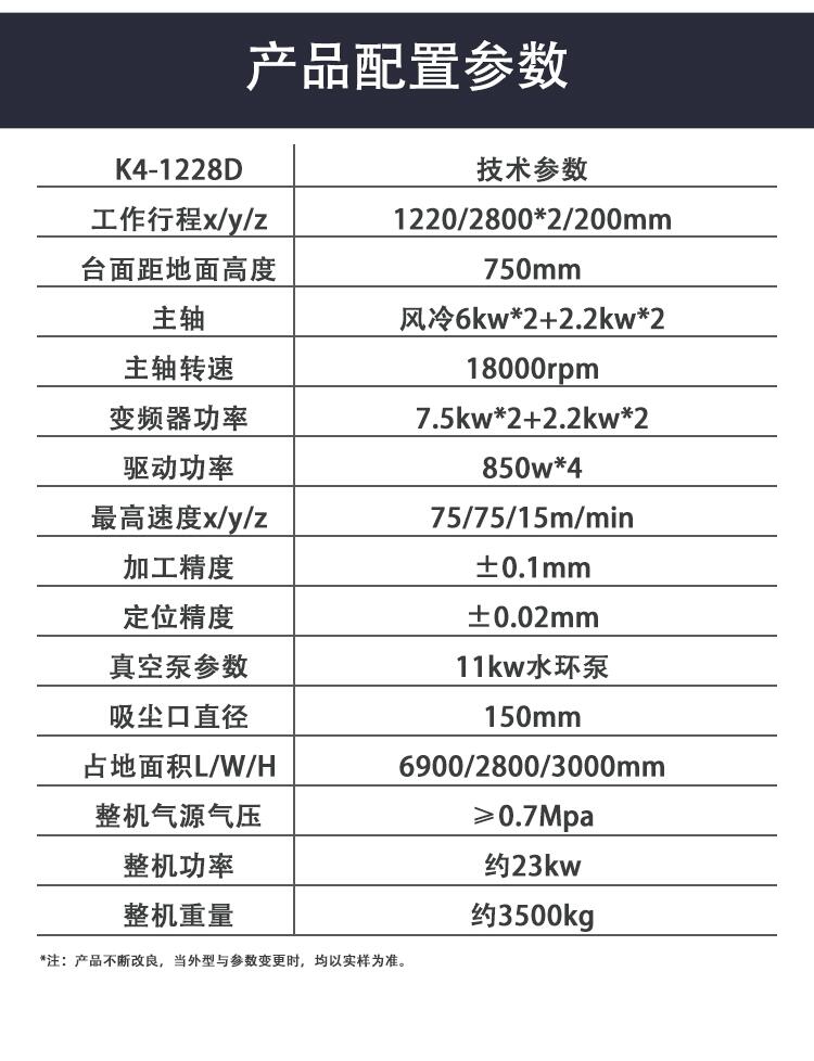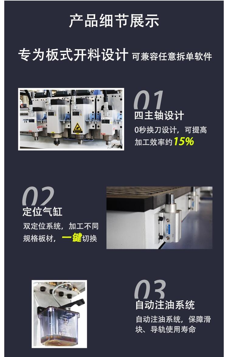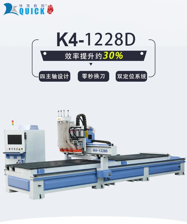 快克数控K4-1228D双工位四工序数控开料机 全屋定制加工设备,配备四个主轴,可完成柜体和简单的柜门加工,是一款性价比较高的机器