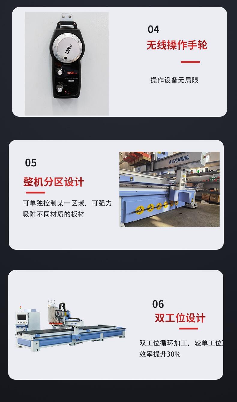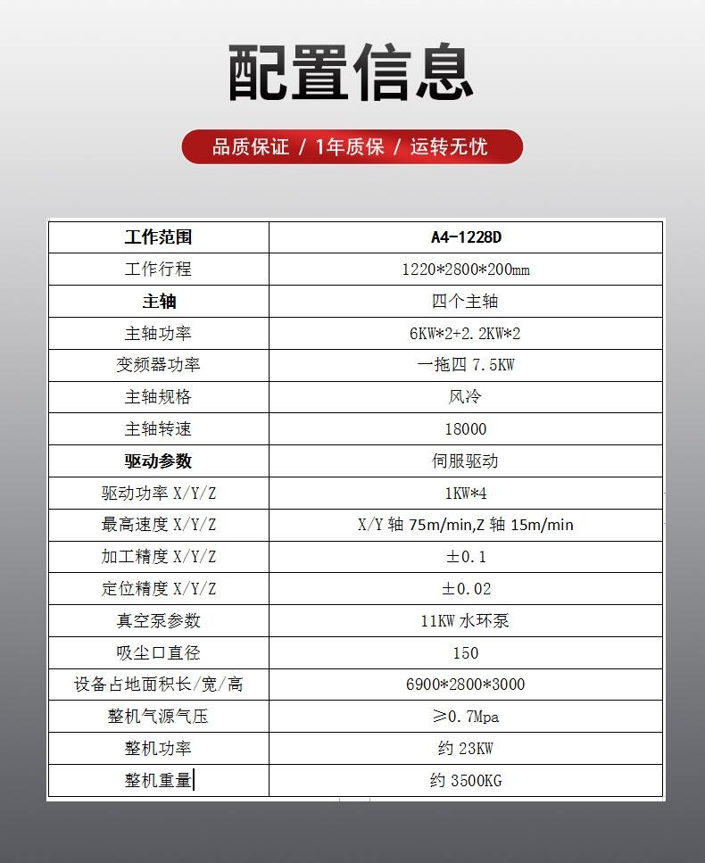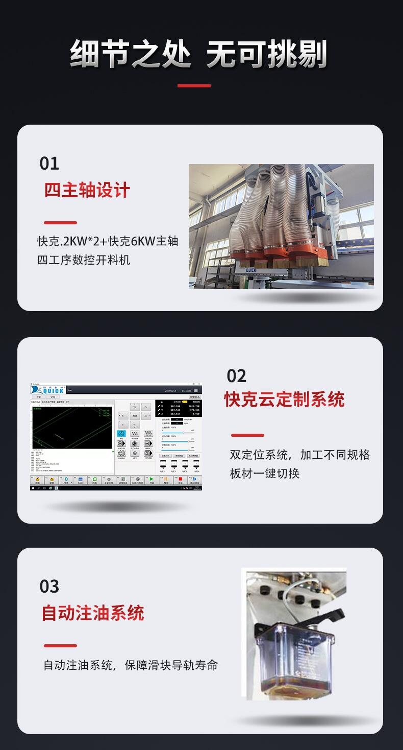 快克数控A4-1228D双工位四工序数控开料机 柜体开料机,配备四个主轴,更加适合柜体的加工。
