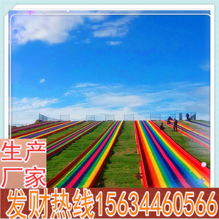 新一代彩虹滑道特点:进口色母,质保, 设计规划场地,彩虹滑道长度以及宽度是可以定制的,滑道可分为单人滑道、双人滑道、多人滑道,常规的户外滑道长度为30-300米,室内滑道15-30米,滑道可加根据场地坡度加入滚珠数量,提升速度,场地无滑坡也可用钢架、脚手架搭建。