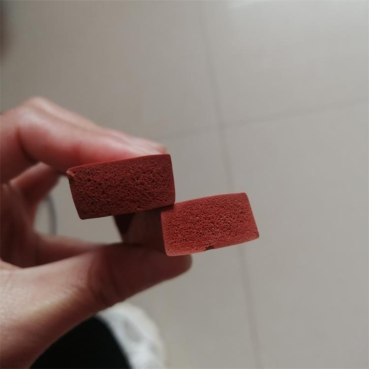4、硅胶发泡条发泡均匀,密度可做到0.4-0.85g/cm3.邵氏硬度8-30A。环保无毒无臭味,回弹性好,柔韧性好,表面无气泡无气孔。强度高,使用寿命厂,绝缘环保,耐高低温,耐压缩,耐酸碱抗老化,抗紫外线。