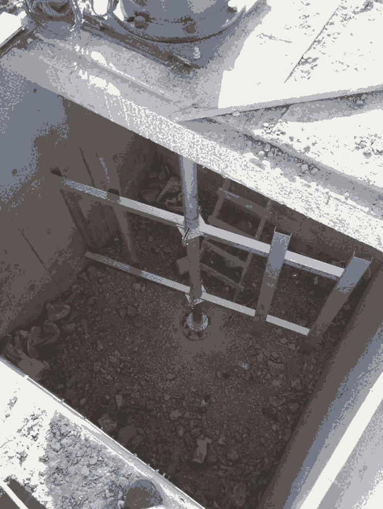锚框式搅拌机与搅拌轴的连接方式类似于桨式,即叶轮与搅拌轴连接的一端制成半圆状的轴环,然后两侧叶片的两个半圆环用螺栓在搅拌轴上夹紧,同时用穿轴螺栓来固定叶片与搅拌轴。由于叶轮的外廓尺寸大,为便于装拆,叶片之间多数是螺栓连接,只有小型的采用铸造或焊接。叶轮以扁钢、角钢制造居多,为了提高叶轮的强度,也可采用加筋的钢板。