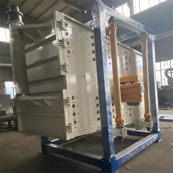 方形摇摆振动筛主要是针对大颗尿素的筛分开发的一种新型筛分设备。本机具有设计合理,结构简单,运行平稳,全封闭结构,无尘染,防堵孔,防粘网等优点。特别是对吸湿性强、粘性大、易堵孔和粘网的尿素筛分更为明显。由于采用了平面回转运动原理,有效的降低了设备的动静比和基础动载荷。该设备采用平面回转圆周运动,网下有自动清理设备,较传统的直线筛而言,提高了丝网寿命,噪音小,筛分面积大,将效率由原来的93~95提高到了98.5,推广前景好 。
