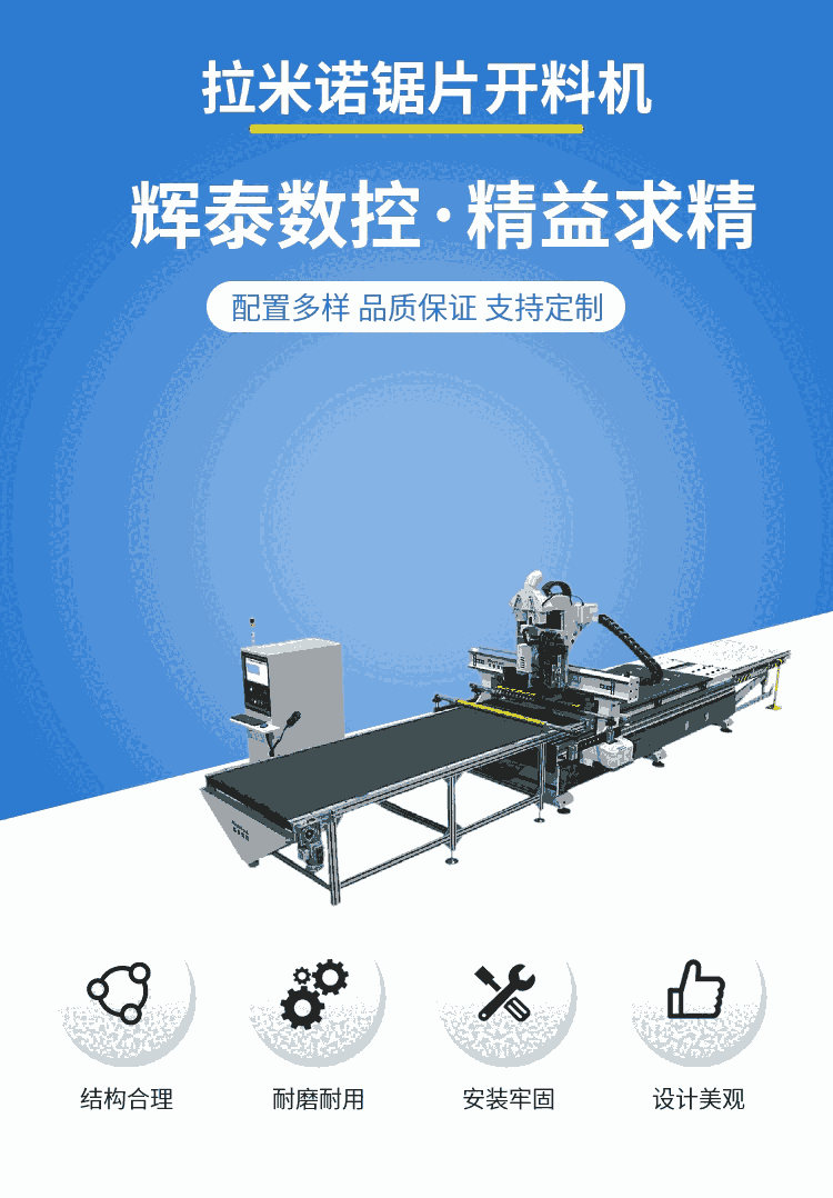 我们辉泰的数控开料机稳定性是非常好的,这都是经过这么多年千千万万的老客户使用后验证过的,咱们的开料机床身都是采用的8mm厚的方钢加工的重型床身。床身,龙门都是经过去应力处理过防止出现变形,咱们的开料机在高速运行中振动非常小、运行平稳,所以在高速切割时也不易产生崩边、断刀这些情况。