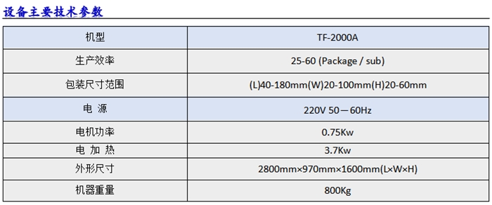 TF-2000A型转塔式包装机,适用于化妆品、保健品等以及相类似物品的外盒透明膜包装。该包装机是采用环保型OPP或BOPP薄膜对不同规格的硬纸包装盒进行三维包装的通用设备。适用于各种规格的药品/食品/化妆品/茶叶/保健品/香烟/VCD等产品外盒透明膜包装,用透明膜三维包装进行外盒包装后有四个好处: