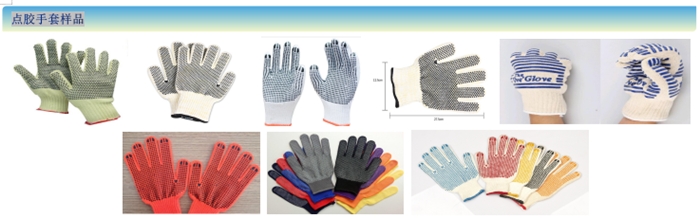 用途:在手套的表面刮上一层PVC颗粒。用以增强手套的防滑及耐用性。