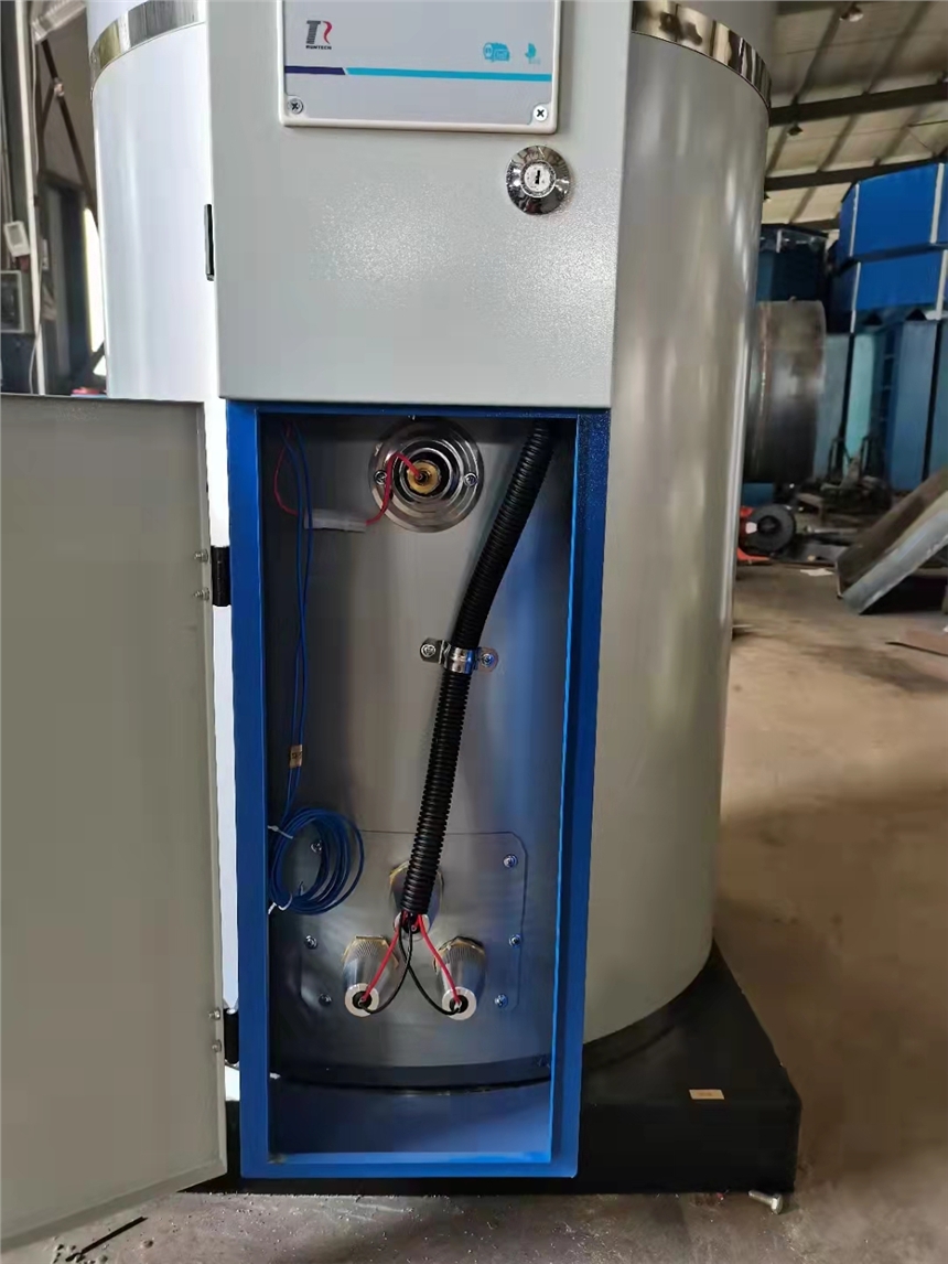 通过控制器根据所测炉胆水位实现对进水电磁阀的开停控制,来实现缺水自动上水,到达所需水位自动停止上水进水。