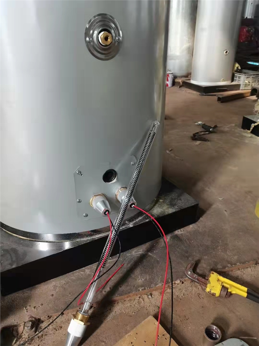通过温度传感器自动感知炉胆水温,到达设置水温后停止加热,低于启动水温后启动加热。