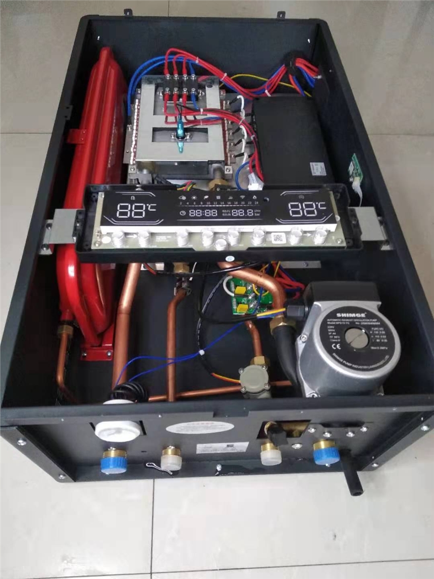 1、采用板式三维迷宫电加热技术,体积小,热量足,水道长,单位热负荷小,皮实耐用;