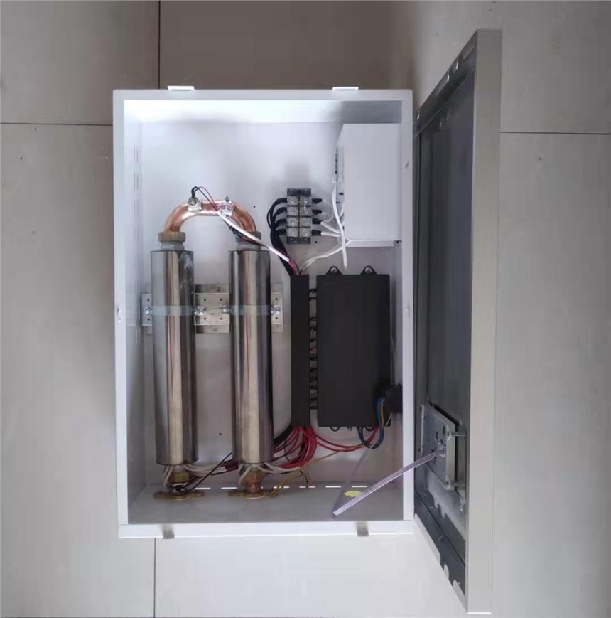 1、加热采用PTC陶瓷半导体加热,工艺上将每个半导体材料均匀的附着在水道管周围,水电分离,在外层包保温隔热棉与不锈钢外包,经常外观小巧美观,且单位面积热负荷小的半导体加热体。常用规格为六角六面加热,水路口径为DN20,水路管路采用铜管连接,形成一个水道循环系统;