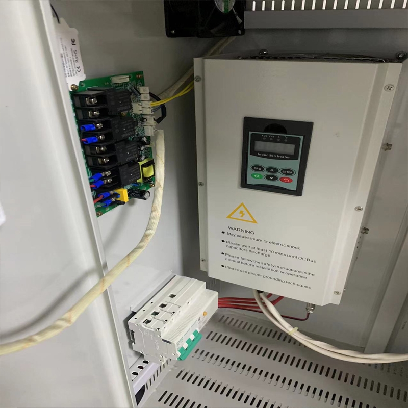 1、采用电磁感应加热原理,半桥/全桥电路,IGBT模块、三相桥堆、谐振电容、高频电磁滤波技术、磁隔离技术等组成,将常规交流220V或380V的50HZ频率,变频整流为直流,工频频率10-20KKZ,通过硅胶线云母线铜管等导线绕组而成,形成磁场,使导磁材料铁等发热,来加热工质,感应加热,无需接触;