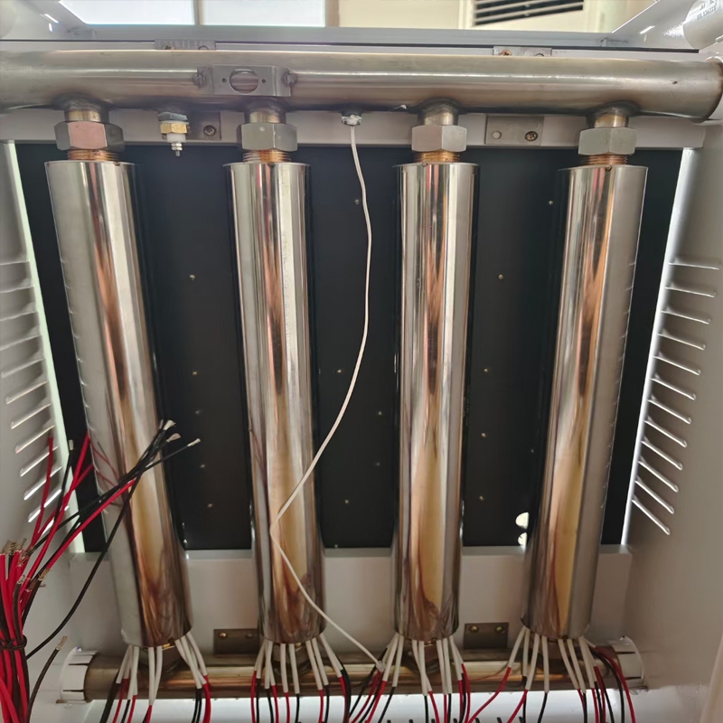 1、该款匠奥电锅炉采用半导体加热器,每组加热器设置为10KW,四组模块组合,互为备用,运用半导体材料的特性进行加热用来采暖或热水。