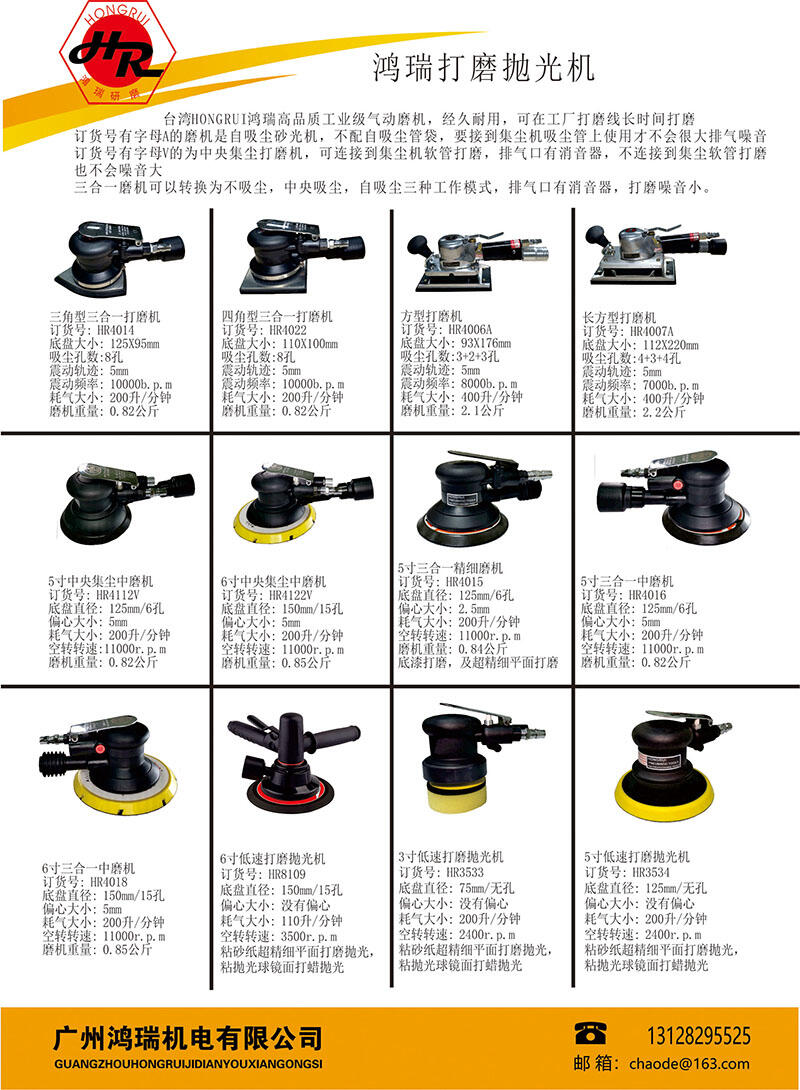 1、自动吸尘款:配自吸尘软管和装粉尘的布袋,在打磨的同时利用磨机排出的压缩空气形成负压,可以吸取部份打磨出来的粉尘到吸尘布袋,吸尘效果不佳。订货号:HR4006D