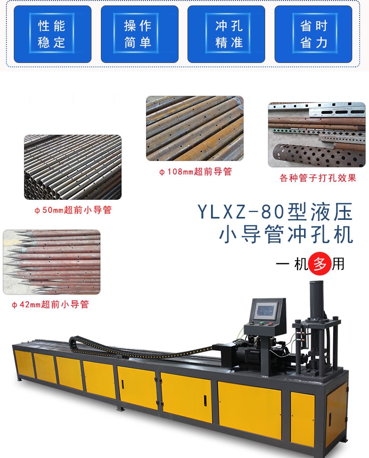 超前小导管冲孔机 注浆小导管冲眼机 小导管冲孔机图文介绍 本机可接连加工孔,并可贮存100个产品的加工参数。带生回想功用,具有记载查询及挑选功用 ,可挑选记载完毕直接加工 数控冲孔机的结构的结构特征:第五:超,该设备为双工位 在单位时刻内能够满意大数量的开孔要求,功率大大高于冲床。