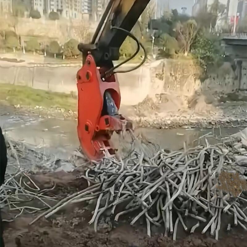 粉碎钳内部剪口能快速剪断钢筋,让拆迁变的更简单,粉碎物料也变快。同时可以将零散的钢筋收集在