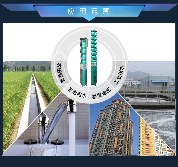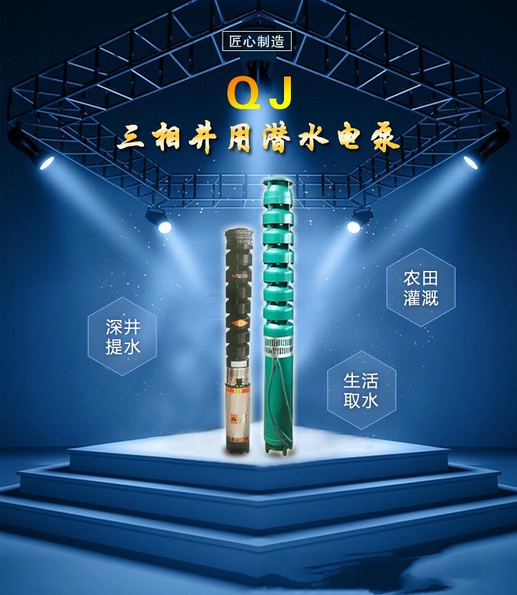 QJ型潜水泵是电机与水泵直联一体潜入水中工作的提水机具,它适用于从深井提取地下水,也可用于河流,水库、水渠等提水工程。主要用于农田灌溉及高原山区的人畜用水,亦可供城市、工厂、铁路、矿山、工地供排水使用。