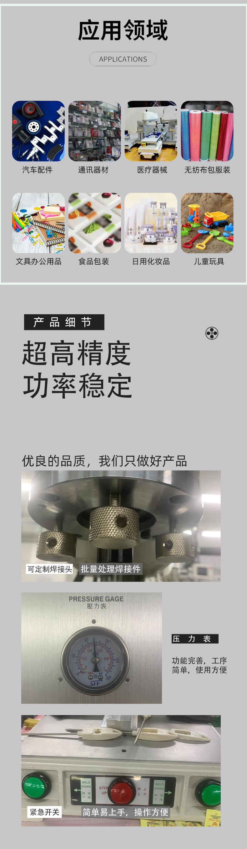 的超声波、动螺丝机、高周波设备生产体系。主要产品:全自动高频