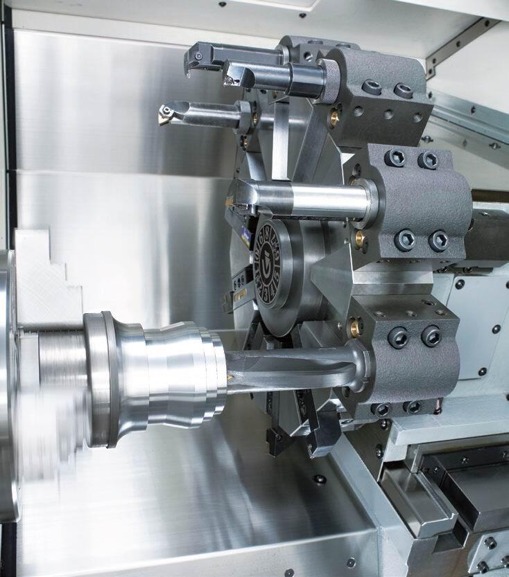 GA 系列结合 C 轴控制及动力刀塔成为车铣复合中心,可将一工件在同一车床内完成车、铣、钻及攻牙等加工。可避免因为工件在机器间移动所产生的误差,并节省加工时间及人力。