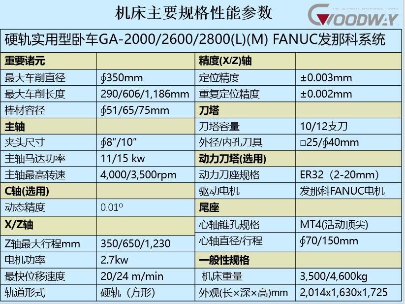 挟带着强大的切削性能与极致的加工精度,程泰 GA 系列 CNC 车床结合了大马力、高刚性结构与大尺寸伺服定位刀塔,提供您高效率的车铣复合加工能力。此一系列 CNC 车床,凭借着优异的重切削性能,无论于缩短加工时间、提高切屑移除率以及加工特殊坚硬材质等各方面,皆较同级机种具有更为突出的表现。除此之外,搭配可提高生产效率的各式标准配备以及极为耐用的机器使用年限。使得 GA 系列可以轻易达成您今日及未来的各种加工需求。