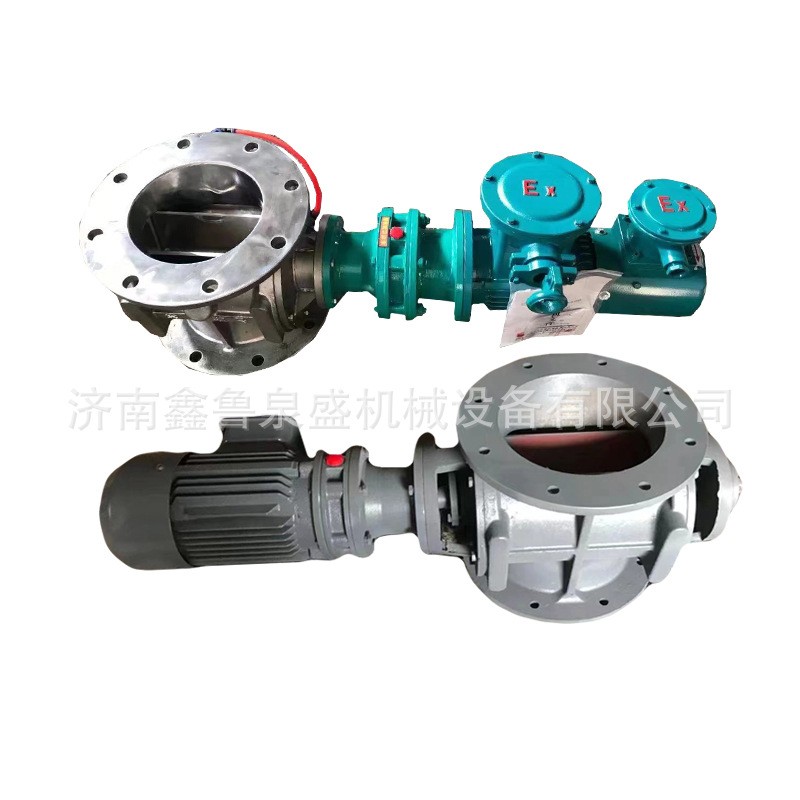 旋转供料器又称旋转阀,星形下料器,锁气器通常的旋转供料器结构是带有数个叶片的转子在圆筒形的机壳内旋转,从上部料斗落入物料,充塞在叶片间的空格内,随叶片的旋转到下部而卸出,机体侧面设有均压排气口,可将叶轮回转带来高压气体从此排走,减少气体顶料现象,有利于物料的顺利下落,对压送式,吸送式气力输送系统,旋转供料器式主要的组成部件,他可以均与而连续的向熟料管内供料,而在系统的分离,收尘部,它又具备卸料器,锁气器的功能。旋转供料器,关风机卸料器旋转,旋转卸料阀旋转阀等,散状物料输送的主要设备.以性强,价格实惠等点应用在粮食加工,化工原料塑料冶金,能源矿业,建材水泥,码头等行业.啤酒厂麦芽车间、酿造车间输送大麦,麦芽等均使用旋转供料器旋转供料器主旋转供料器主要由主阀(壳体,端盖,叶轮,结构等),电机减速机,防护装置(链轮,链轮旋转供料器的配件-抽气室-加速室-防卡进料器。