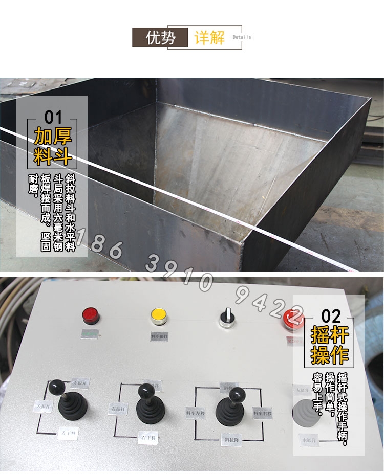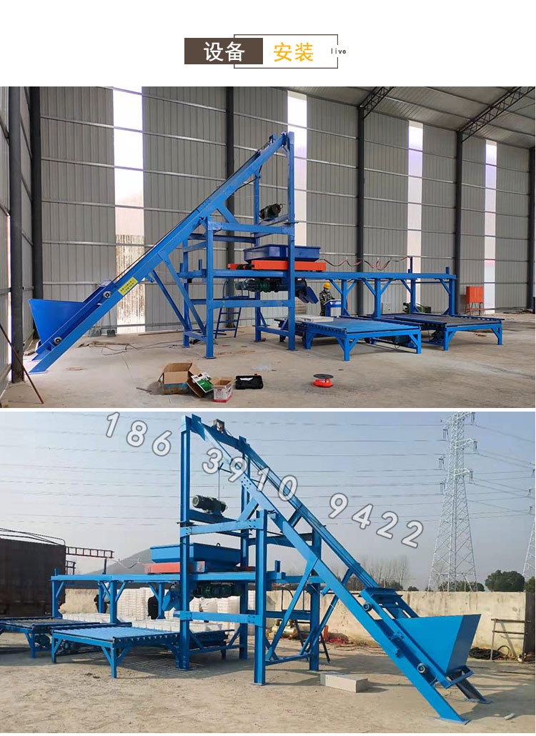 集料仓的顶部架设有防雨遮阳棚,集料仓的出口边墙部分设置标识牌,标示牌上标记有集料规格、产地、进场数量、进场日期、检验状态以及原料信息二维码。混凝土预制块生产线 护坡砖预制生产线 预制块码垛机