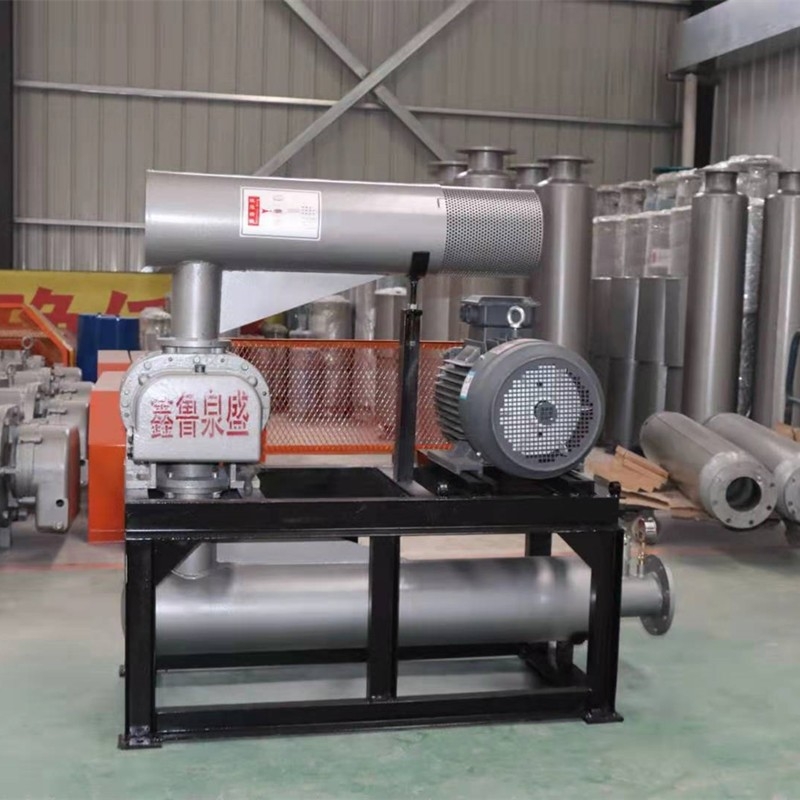 罗茨鼓风机一种容积型回转式气体动力机械。在机壳与墙板合为而成的气缸中,平行的配置一对能相互啮合但又保持固定啮合间隙的转子,将机壳上的进气口与排气口分开,并由同步齿轮传动做反向等速旋转,把叶轮型面与气缸壁所形成的工作容积中的气体,无内压缩的从进气口推移到排气口,由排气侧的高压气体回流实现定容积压缩而达到升压或强制排气的目的。通常罗茨鼓风机的进气压力为大气压。 罗茨鼓风机本身不存在内压缩,压力的升高依赖于排气口工作系统的背压。