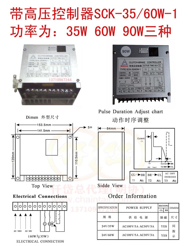 SCK-35/60W-1带高压控制器可搭配台湾仟岱电磁离合刹车器CDA005AA,CDA010AA,CDA010AF,CDA020AA,CDF020AC,CDE020AE等产品使用。