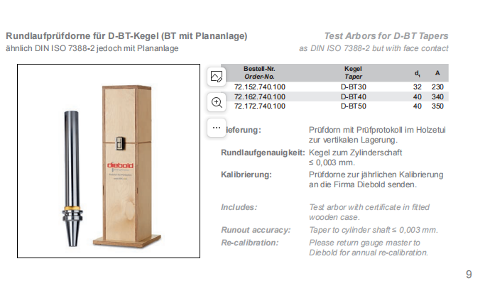 德国戴博DIEBOLD 主轴检测棒 BT50五轴机床 专用球头跳动检测棒现货
