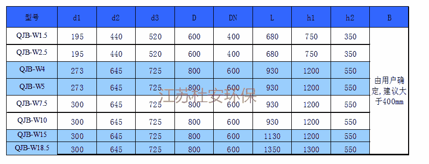 江苏杜安环保QJB-W型潜水回流污泥泵设备主要部件材质用于制造和安装立式污水泵的材料应能满足强度、刚度、寿命要求。