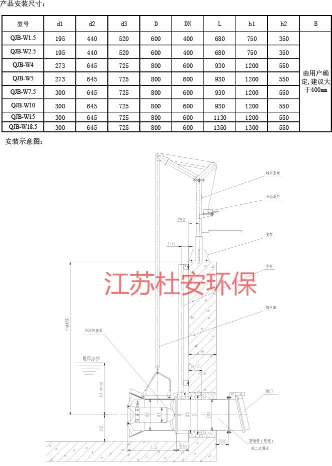 杜安环保QJB-W7.5污泥回流泵为两级污水处理厂混合液回流、反硝化脱氮的专用设备。亦可用于地面排水、灌溉和废水处理过程中再循环等需要微扬程、大流量的场所。