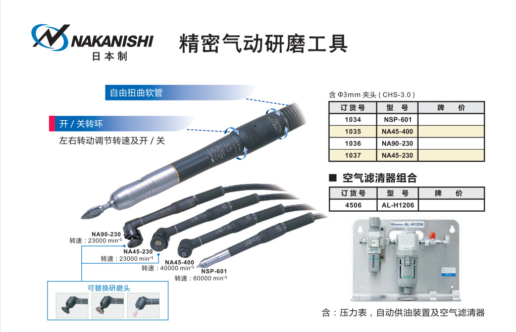 中西NAKANISHI 超高速气动打磨机 NA90-230 手持式雕刻机抛光机现货