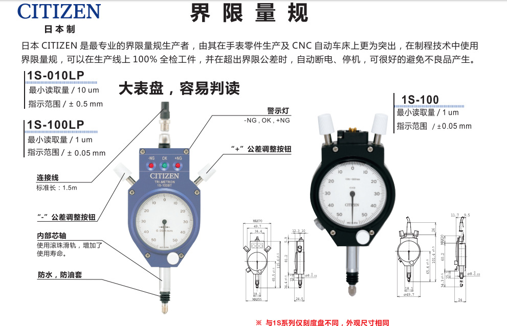 日本西铁城CITIZEN 小型界限量表 指示量表 1S-100界限量规
