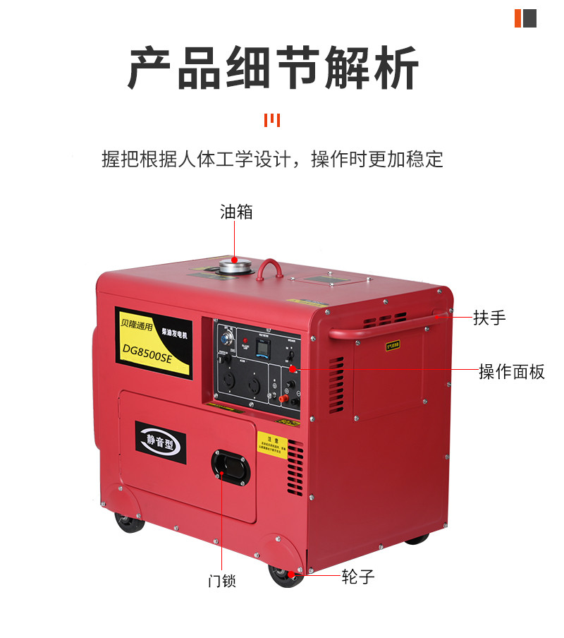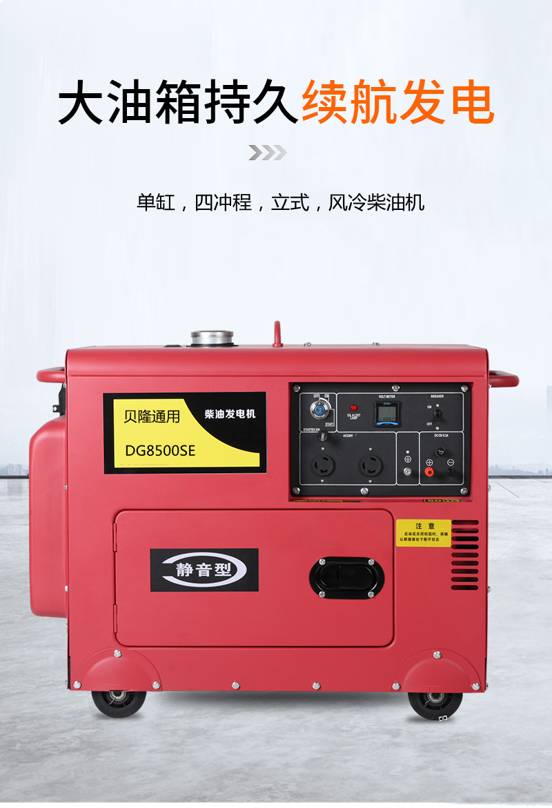 贝隆通用6kw单相220V静音柴油发电机组192F柴油机纯铜电机