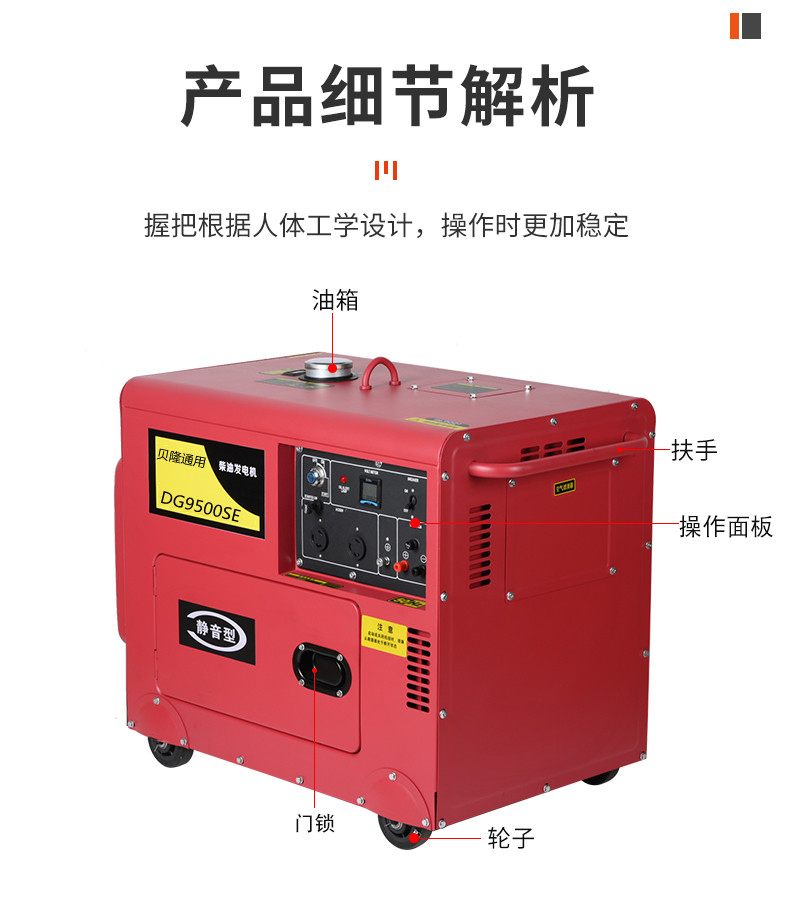 贝隆通用6.5KW单相220V静音柴油发电机195F柴油机纯铜电机