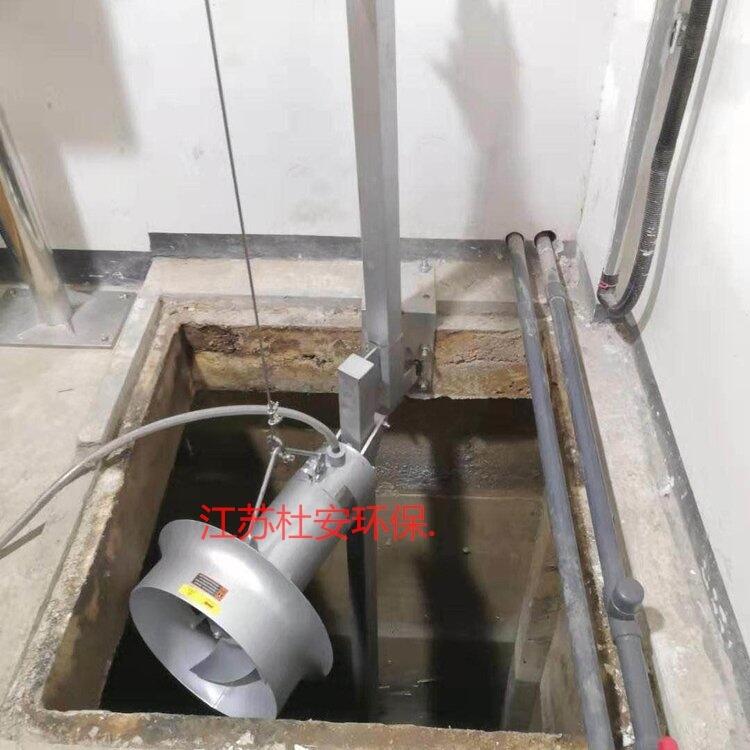 江苏杜安环保不锈钢潜水搅拌机一般配制导流罩以增加轴向流动并减少径向流动,减少叶轮振动,增加运转的平稳性。而低速推流型潜水搅拌机不配制导流罩。