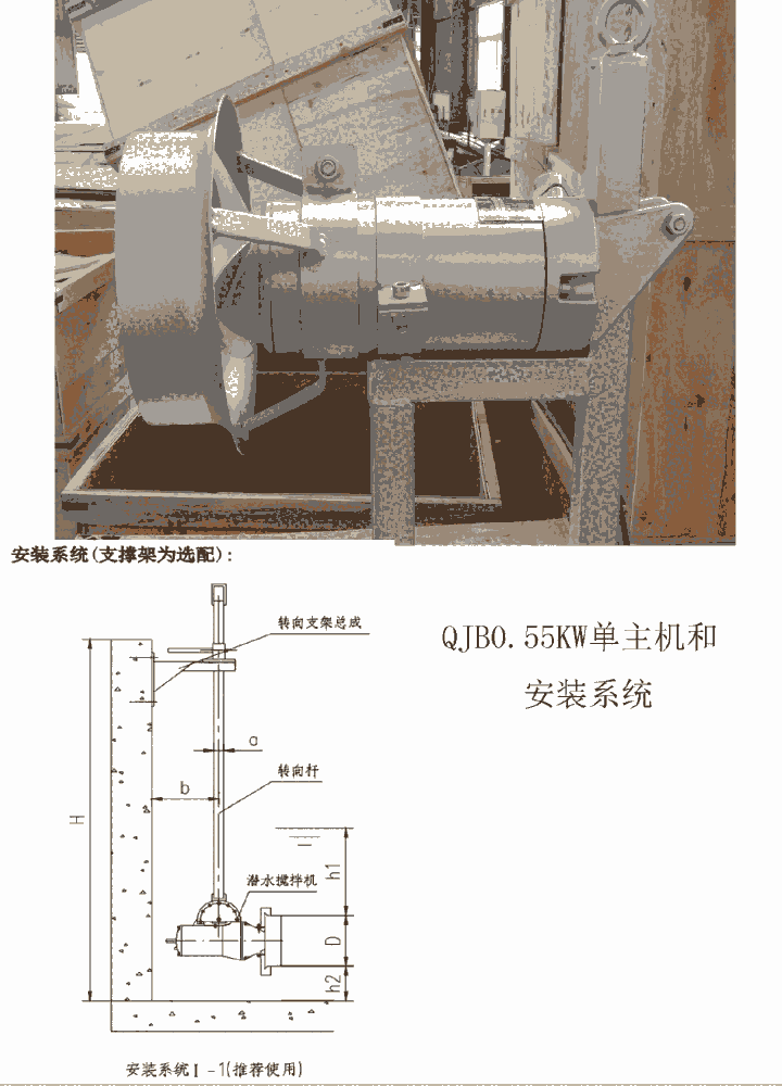 QJB潜水搅拌机主要由潜水搅拌机主机、安装系统及电控设备组成。