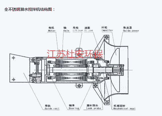 江苏杜安环保QJB潜水搅拌器为成套设备(包括自保护装置),应保证设备在运行时不另外需要配件,并提供成套设备的安装,指导调试。主要供货内容至少包括以下部分: