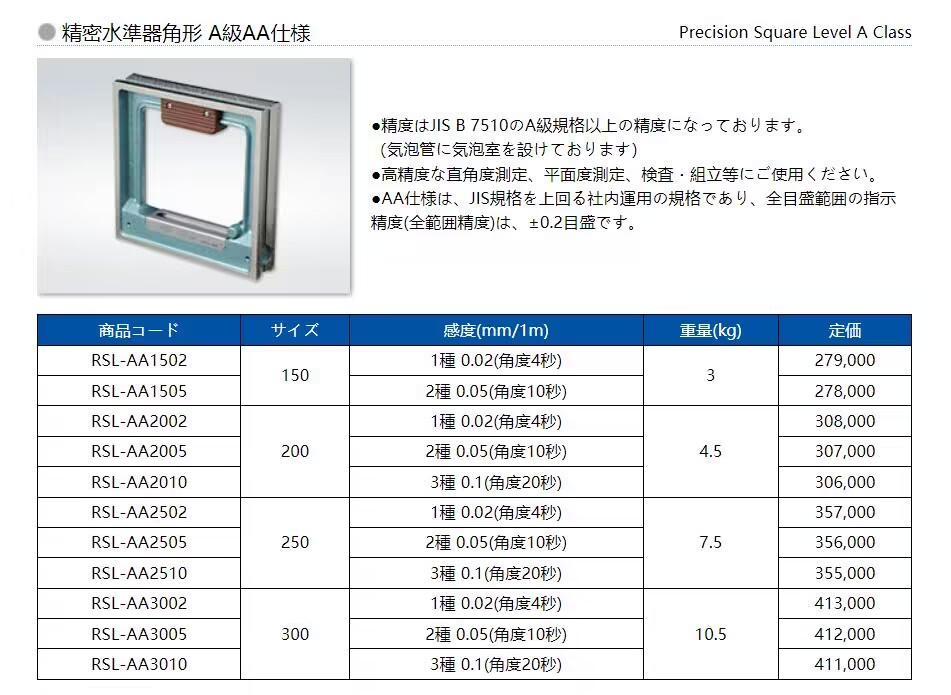 日本理研RIKEN 框式精密水平仪 RSL-AA1502 2002 2502 3002