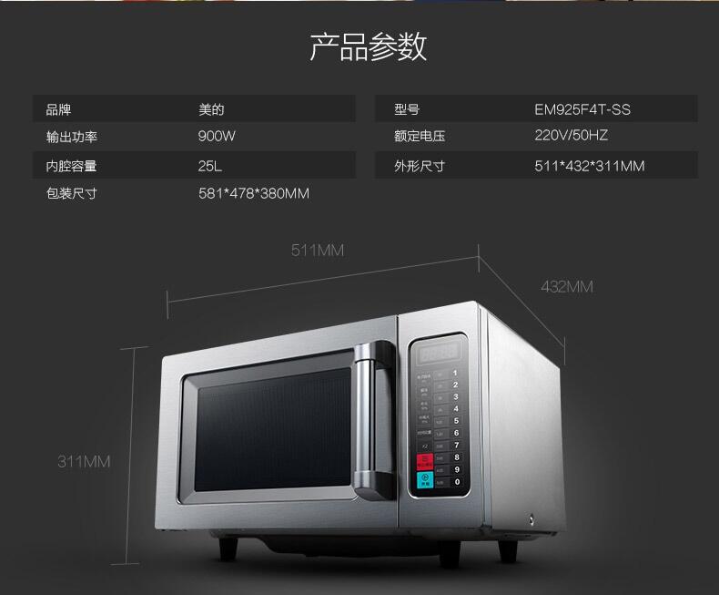 美的商用微波炉EM925F4T-SS连锁便利店餐饮快速加热炉25L
