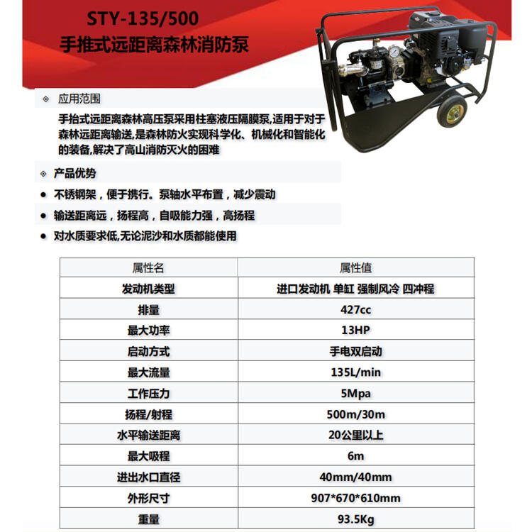 推抬式远距离森林消防泵STY-135/500隔膜高扬程水泵