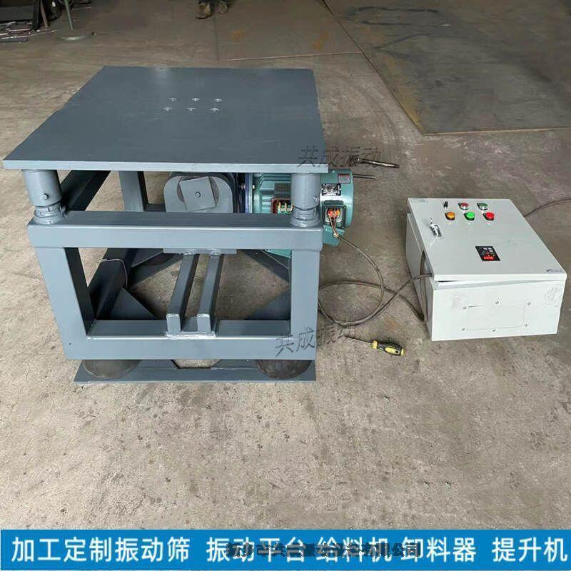 振动平台,混凝土路缘石振动板用振动平台、水泥构件振动台,水泥井盖振动平台 震实振捣台规格大小齐全,欢迎联系路边石振实台 振动平台、振动台大小规格齐全、功率2.2kw x (4-5),激振力120KN,小型振动平台规格:400x400、500x500、大型振动平台规格3000x4000mm等规格可承载砂箱重量12T,承载量可设计制造到15T。人防门振动平台 振实平台因每个行业所需规格不等,有圆形、正方形、长型等不同形状的振动平台,长度和宽度各不相同,因此共成公司长期根据用户所需单独为客户量身定做不同高度,台面规格不等的振动平台、震实台,因为专业设计制作请您相信我们的能力、实力以及对客户的负责会为您制作优质性能稳定的振动平台,振动筛、提升机等产品。