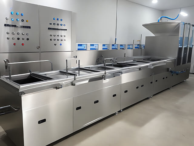 汽车转向节超声波清洗机主要由主机架、超声波发生器、清洗槽、加热系统、过滤系统、传送系统、安全装置、控制系统等组成,其工作流程如下:将需要清洗的转向节部件放置在传送装置上,通过导向装置进行精确定位,操作人员通过控制系统启动设备,并根据具体需求设置清洗参数,转向节部件首先经过预清洗槽,去除大部分表面污垢,部件进入超声波清洗槽,高频超声波作用下,清洗液迅速渗透至转向节的各个角落,彻底去除顽固污渍,清洗后的转向节进入漂洗槽,使用纯净水进行二次清洗,去除残留的清洗剂和污物,最后,转向节通过干燥装置,使用热风或真空干燥技术,确保表面完全干燥,根据生产需求,重复上述操作步骤,进行批量清洗。