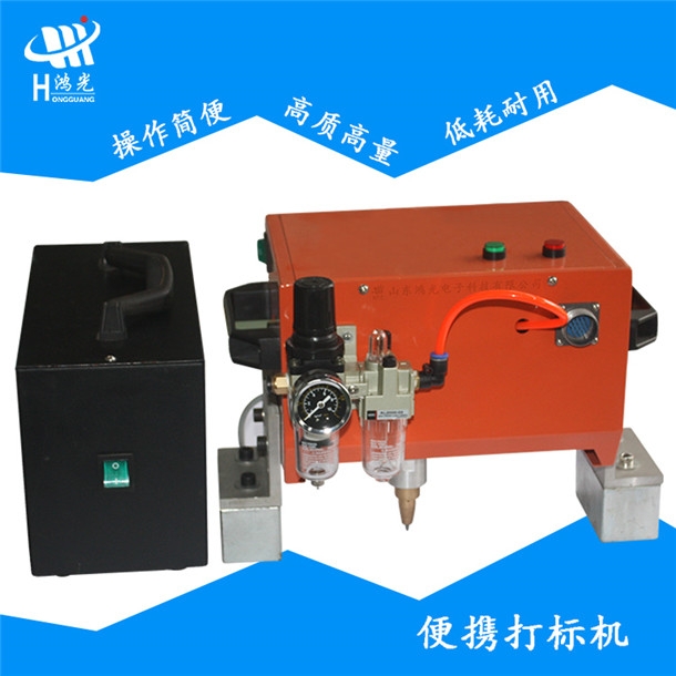 第二类是便携式气动打标机,适用于不易搬动到工作台上打标的工件,移动打标机机头到工件上打标,它继承了台式气动打标机原有的优点,在产品的适用性方面做了很大的改进,弥补了台式打标机的不足,广泛应用于汽车大梁。摩托车车架、大型管道、异型工件、铭牌和各种不易搬动的工件的标记,使用轻便,操作简单,便于携带,可与笔记本电脑或者单片机配合使用。
