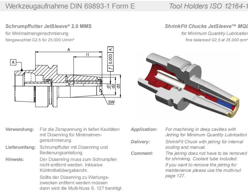 德国戴博Diebold 热缩刀柄HSK-A40  72.565.510.010内冷精密刀柄