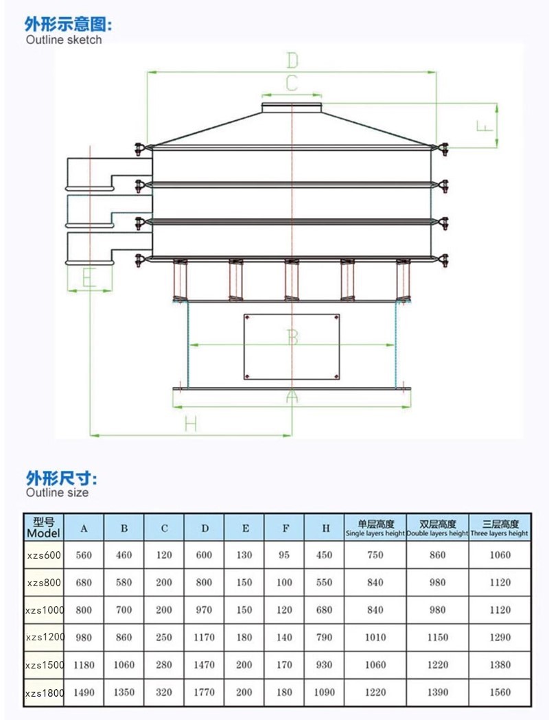 旋振筛分级就是把颗粒、粉末分成大小不同的粒子段单台多层式振动筛分机可配1至5层筛网,能连续分选出2-6个颗粒级并控制较窄的颗粒度范围,勇梅机械旋振筛是一种高精度细粉筛分机械,其噪音低、效率高,快速换网需3-5分钟,全封闭结构,适用于粒、粉、粘液等物料的筛分过滤。旋振筛振动体的运动轨迹为一复杂的空间三维曲线,此曲线在水平面上的投影为圆形,在两垂直面上的投影为两相同的椭圆。实际运用中,通过调整振动电机上下两端偏心块的相对相位,可以改变筛面上物料的运动轨迹,从而达到不同的筛分作业目的。