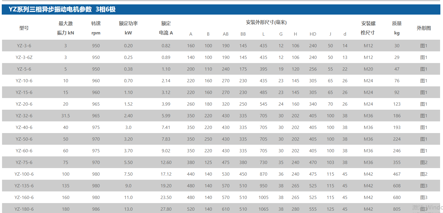 6.温升:小于80K(电阻法)  YZ三相异步振动电机 YZ-60-6惯性振动器