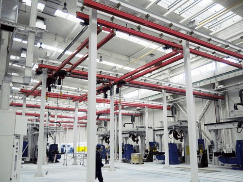 KBK 单梁悬挂起重机可以简单地悬挂于建筑屋顶或上部结构上,起重机轨道无需额外的辅助支撑,无论是服务于车间的部分或者全部,都可以简单可靠地安装,成本较低。