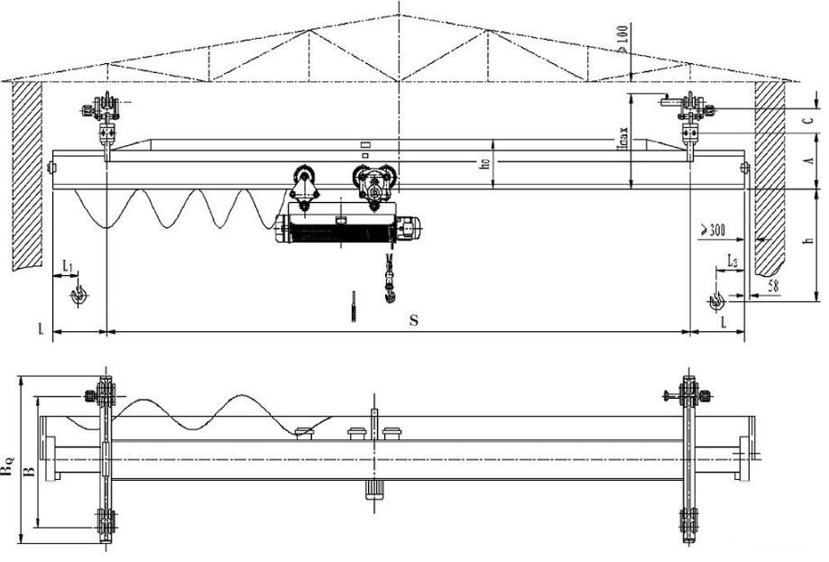 LX型单梁悬挂起重机构造示意图: