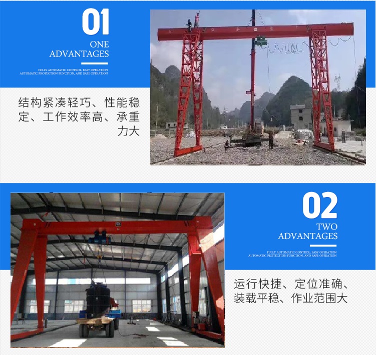 电动葫芦半门式起重机与CD1、MD1等型号的电动葫芦配套使用,是一种有轨运行的中小型起重机。本产品为一般用途起重机,多用于机械加工车间的物料搬运。下横梁专用减速机可使起重机内侧作业空间更大。